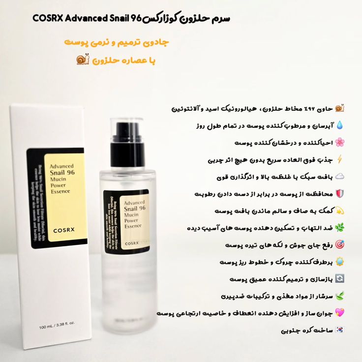 حاوی: اسلایم حلزون،آلانتوئین،پانتنول،هیالورونیک اسید